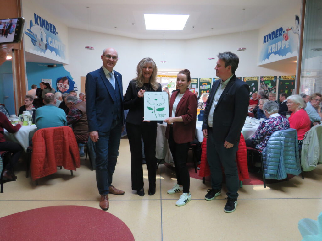 Doch der Tag hielt noch einen weiteren bedeutenden Moment bereit: Wir wurden offiziell mit dem Zertifikat „Gesunde Kita“ ausgezeichnet. Besonders stolz macht es uns, dass wir die erste Kindertagesstätte im gesamten Altmarkkreis Salzwedel sind, die diese Auszeichnung tragen darf. Frau Hoppe (Referentin in der Landesvereinigung für Gesundheit Sachsen-Anhalt) überreichte unser Leitung Frau Hoffmann feierlich das Zertifikat. Diese Zertifizierung ist das Ergebnis unserer nachhaltigen pädagogischen Arbeit. Von (hin) unserer bewussten Ernährung der Vollverpflegung bis hin zu vielfältigen Bewegungs- und Gesundheitsangeboten. Es spielte nicht nur unsere gesunde Vollverpflegung eine wichtige Rolle, sondern auch unsere gelebte Partizipation mit dem Kinderrat, sowie die Zusammenarbeit mit dem Elternrat und Förderverein. Stolz sind wir auf die Zusammenarbeit mit allen Kooperationspartnern, besonders auf die regionalen Anbietern, die wir auch als Gäste herzlich begrüßen durften.